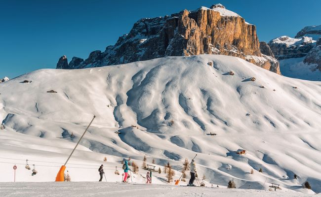 Von Canazei hast du direkten Zugang zur Sellaronda, dem legendären Skikarussell, auf dem du das Sellamassiv an einem Tag umrundest. Im Dolomit Superski Skipass ist die Nutzung aller hierfür erforderlichen Liftanlagen inbegriffen.